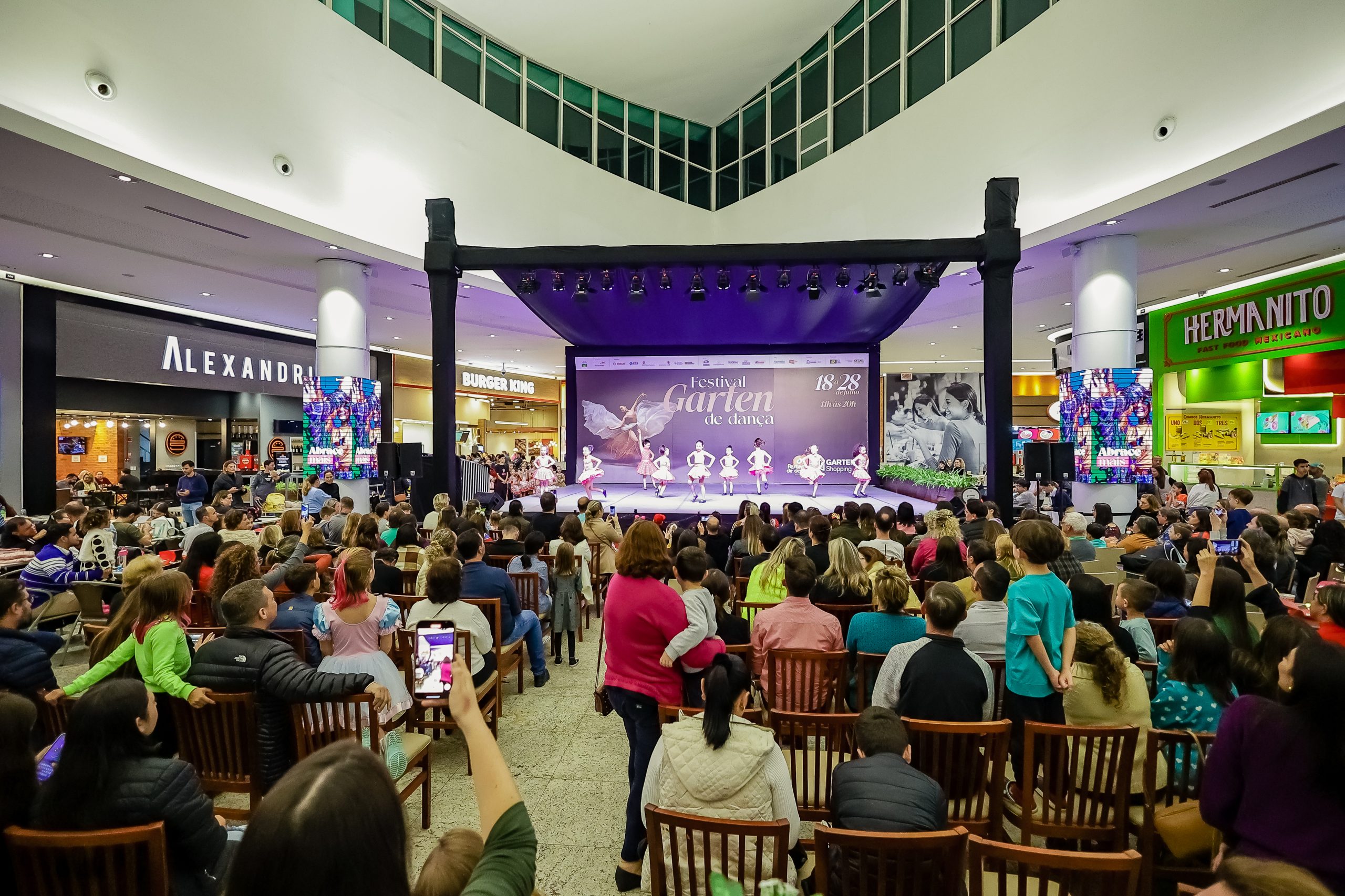 A programação desta quarta-feira, dia 26, inicia às 11h com os grupos participantes do Palco Aberto. No fim da manhã, a partir das 12h, o clima da dança do ventre invade a praça de alimentação. O grupo Studio A Dança do Ventre preparou uma apresentação exclusiva para o público do Garten Shopping.
