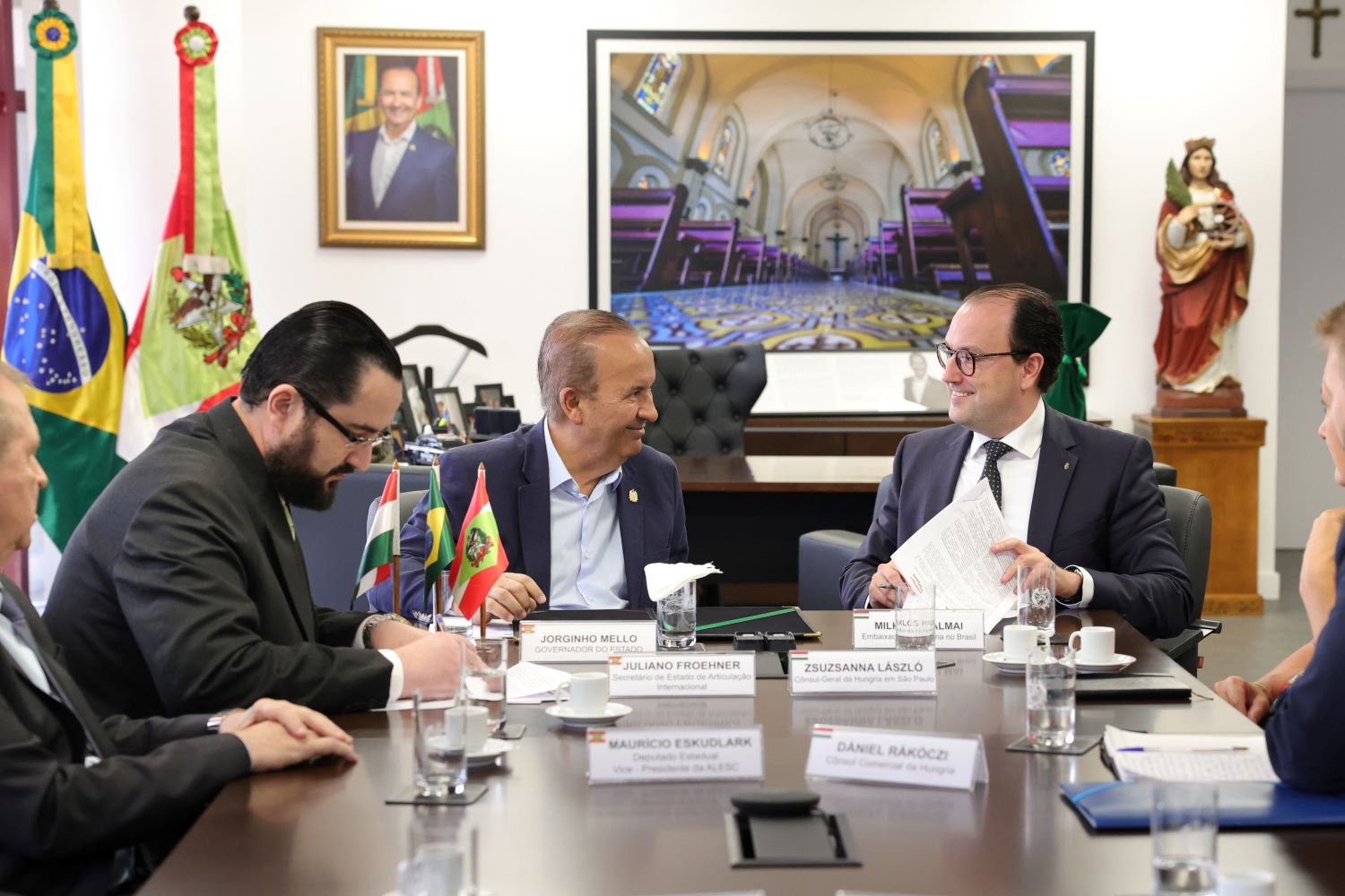 Também participaram do encontro os deputados estaduais estaduais: Maurício Eskudlark, Carlos Humberto e Maurício Peixer, além do secretário de Estado da Articulação Internacional, Juliano Froehner e representantes do Consulado da Hungria no Brasil.