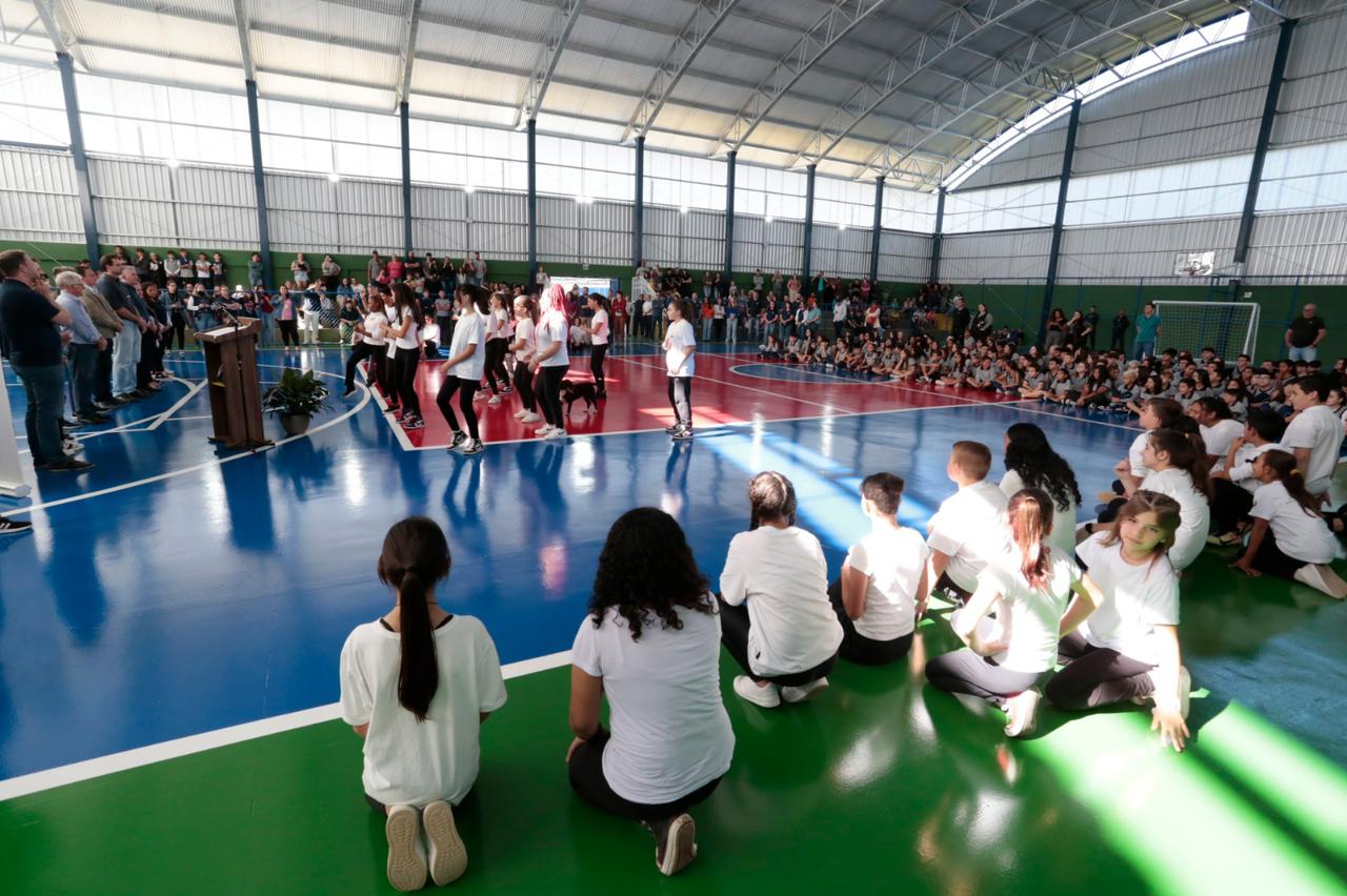 “É uma das maiores escolas que temos em número de alunos e era um sonho de décadas ter uma quadra coberta. Conseguimos construir esse ginásio lindo, com arquibancada e salas de apoio. Com certeza, os alunos terão um ambiente muito melhor”, comenta o prefeito Adriano Silva.