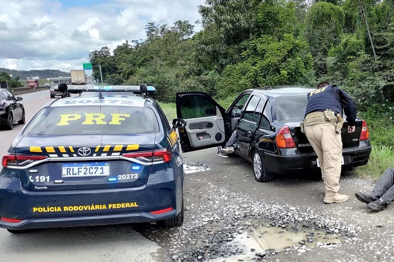 O motorista de um Renault Clio não obedeceu ordem de parada e fugiu por alguns quilômetros, fazendo diversas manobras arriscadas até ser abordado. O porta-malas e o banco traseiro estavam lotados de tabletes e pacotes de maconha e skunk, que segundo o envolvido, seriam entregues em Joinville.