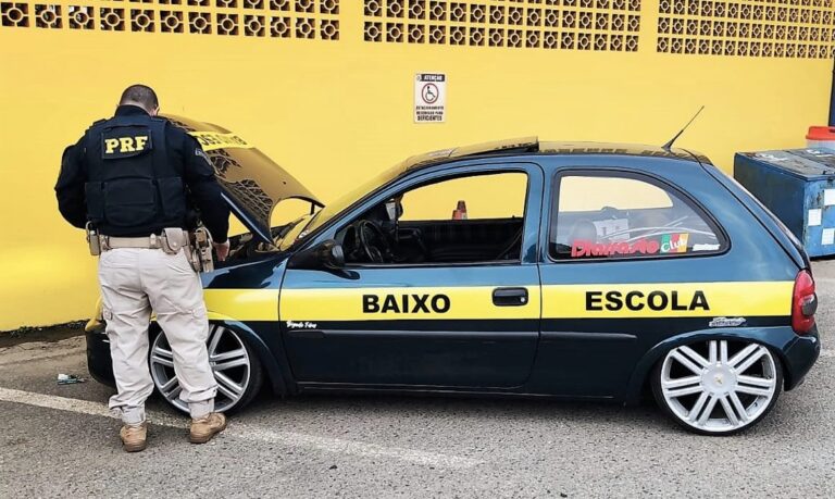 Geral PRF flagra carro rebaixado irregularmente e com motor de outro veículo na BR-101 em Joinville Folha Metropolitana 15/12/2022