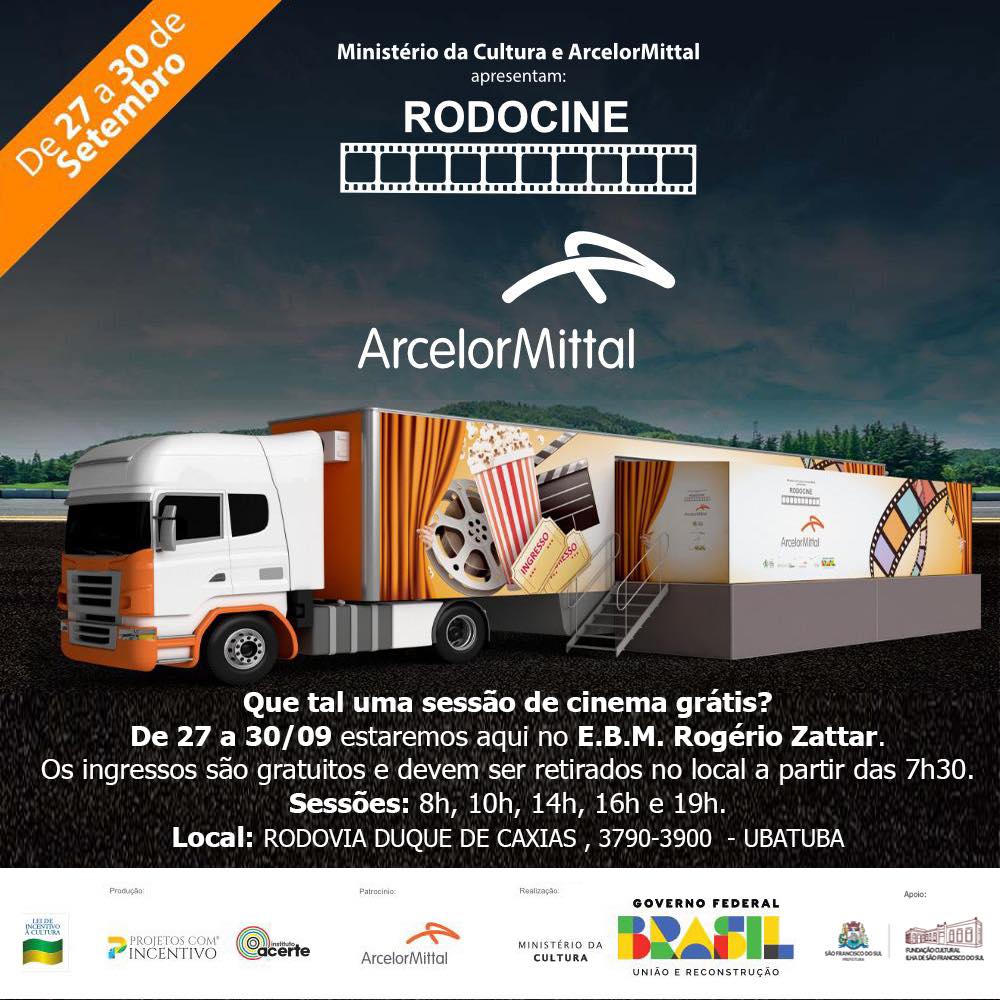 O projeto Rodocine é uma iniciativa da ArcelorMittal com apoio do Ministério da Cultura, Prefeitura de São Francisco do Sul, por meio da Fundação Cultural. E foi idealizado pela Projetos com Incentivo e Instituto Acerte.